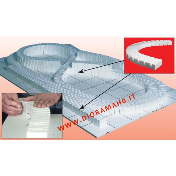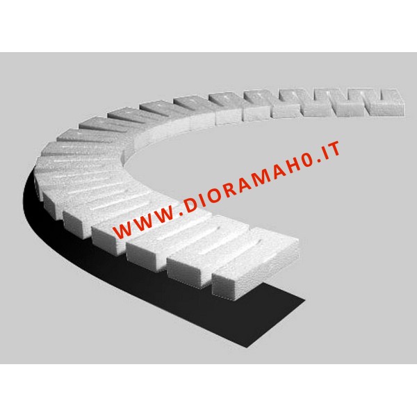 Terrapieno flessibile realizzato in polistirolo ad alta densità, si adatta a qualsiasi raggio di curva ferroviaria.