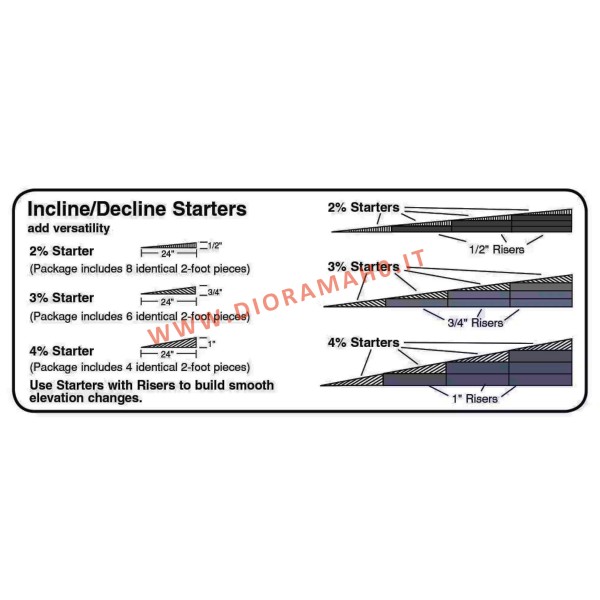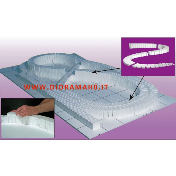 Rampa flessibile per salita e discesa di livellette, realizzato in polistirolo ad alta densità, si adatta a qualsiasi raggio di curva ferroviaria.