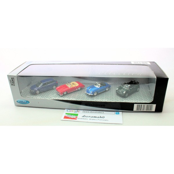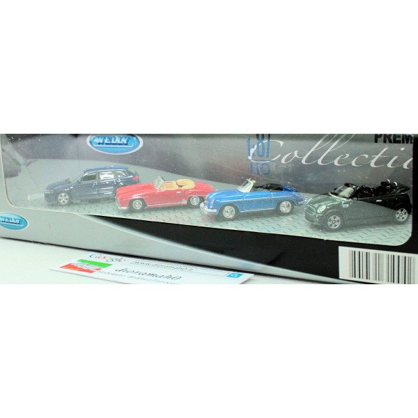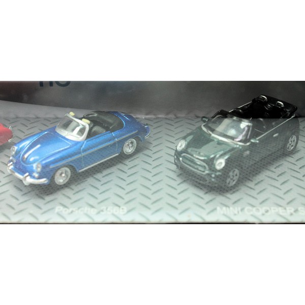 Audi A3 Sportback, 1955 Mercedes B. 190SL, una Porsche 356B e infine la Mini Cooper S Cabrio come da foto con colori diversi e finemente dettagliate.