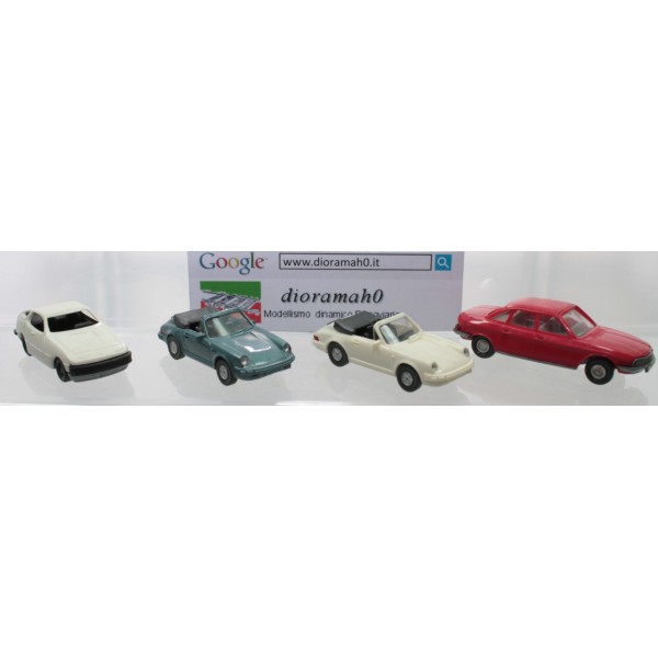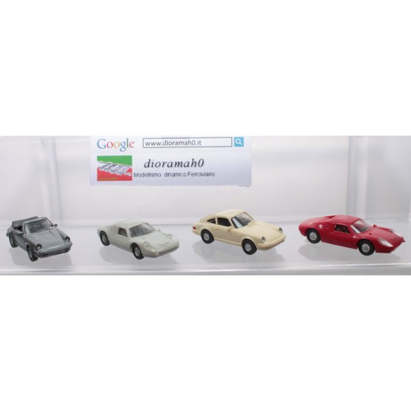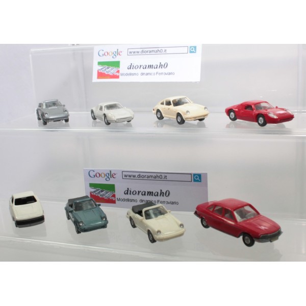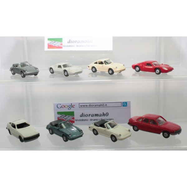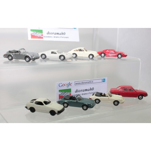 Sette veicoli ottimi per auto saloni Porsche o per paesaggi turistici ecc. Scala 1/87, tutte produzioni made in Germany, usato senza confezione ma in ottimo stato per decorare il plastico ferroviario e collezionismo.