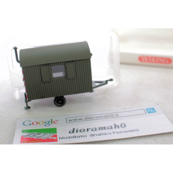 Roulotte militare ben dettagliata di facile collocazione presso caserme, centri di addestramento e reclutamento e o zone di guerra, timone per auto Wiking Herpa Roco.. scala 1/87. Può essere anche cucina da campo o primo soccorso.