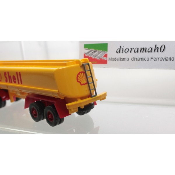 Autotreno cisterna CARBURANTI carburanti "SHELL" ricca di dettagli; scaletta, bocchette superiori colori e loghi. Scala 1/87 confezione originale.
