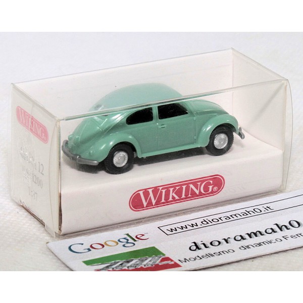 Auto modello VW 1200 Maggiolino, con lunotto posteriore "due vetrini" che ne segnala la i serie. Colore come da foto in scala 1/87.