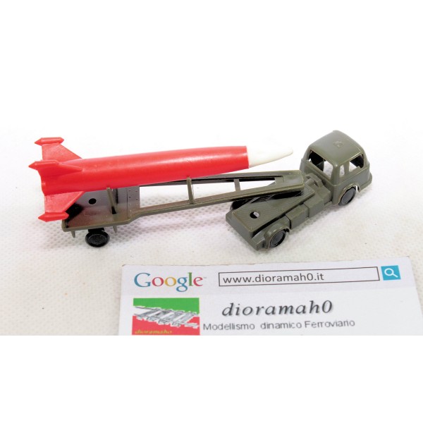 Trattore aeroportuale con carrello porta missile, scala 1/87 come da foto. Confezione sacchetto.